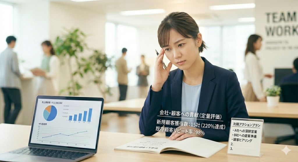 評価の指標となるのは、主観的な「頑張り」ではなく、客観的な「数値や成果」です。